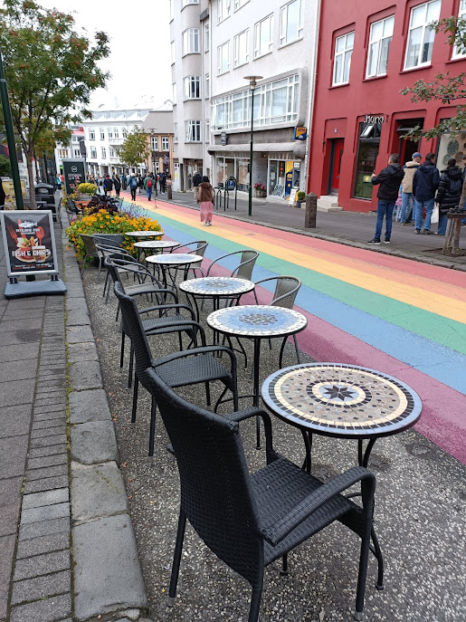 After breakfast, we went on a tour to see the whales. We consumed a lovely lunch of French toast, hot chocolate and homemade soup, before boarding the spacious Amelia Rose yacht. I would recommend staying outdoors for most of the journey as the waters can be choppy, and you can get seasick. Minke whales and Humpback whales swam quite close to the boat, however, in order for us to see these magnificent creatures, the engine was switched off, so as not to frighten them. Humpback whales body mass can reach up to 40 metric tonnes, and they jumped quite high into the air before diving back down into the water showing their big tail fin. After the amazing boat journey, we did a little shopping in Laugavegur street, where the shop Icewear can be seen everywhere, but way too pricy for my pocket. Also, near us was Rainbow Street, lined with lovely cafes, the street is painted in all the colours of the rainbow. After a little shopping, mainly for souvenirs, we dined in another lovely gastro pub, more like an expensive restaurant, and ate €60 steak and the local lamb with a bottle of wine. To finish off the night we listened to music in the Bookshop (pub) and drank the local Icelandic beer called Gull.